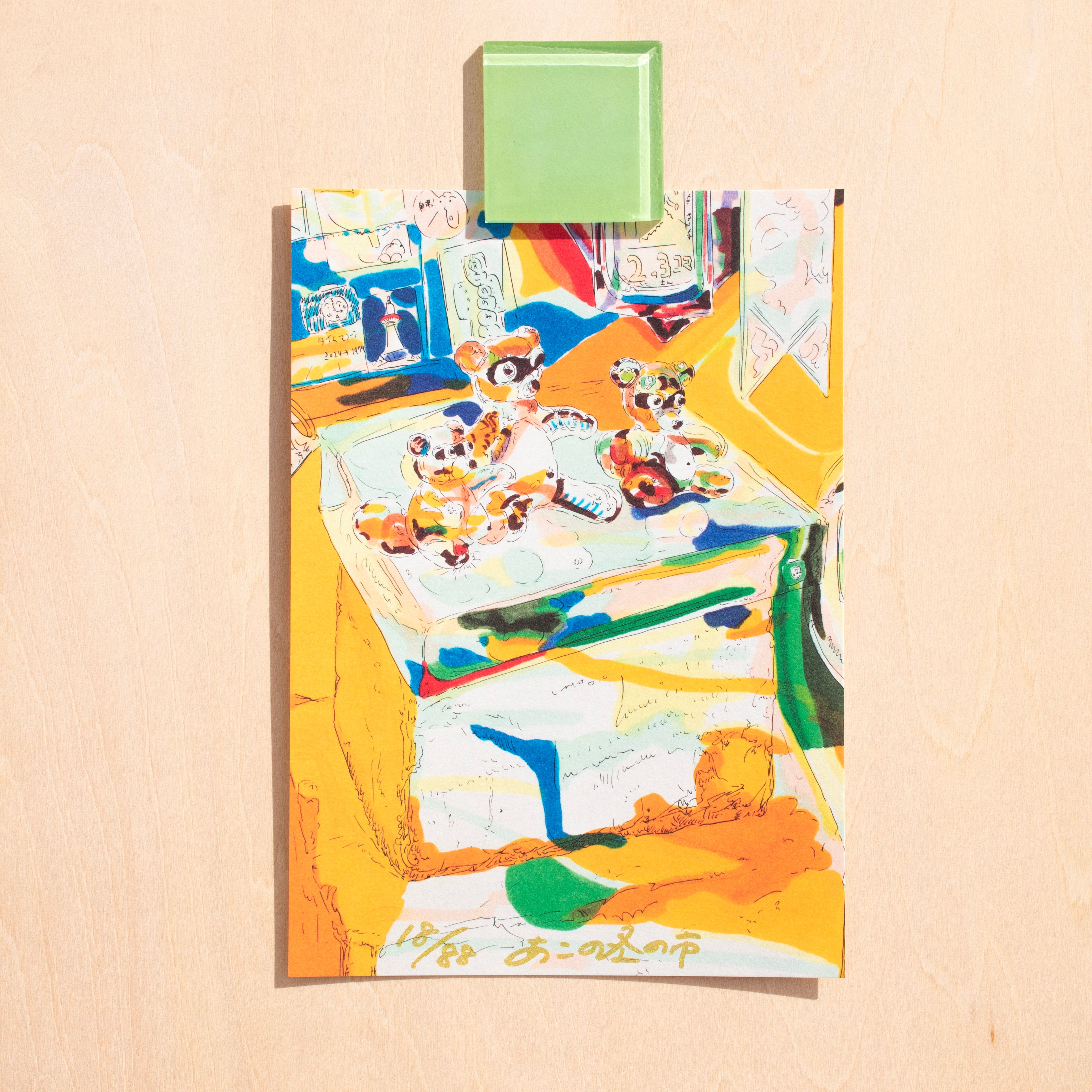 今回は2024年10月に出会ったもの・ことにまつわるイラストとお手紙です。8が2つ並ぶとたぬきに見えたため、88枚限定販売。エディションとサイン付き。